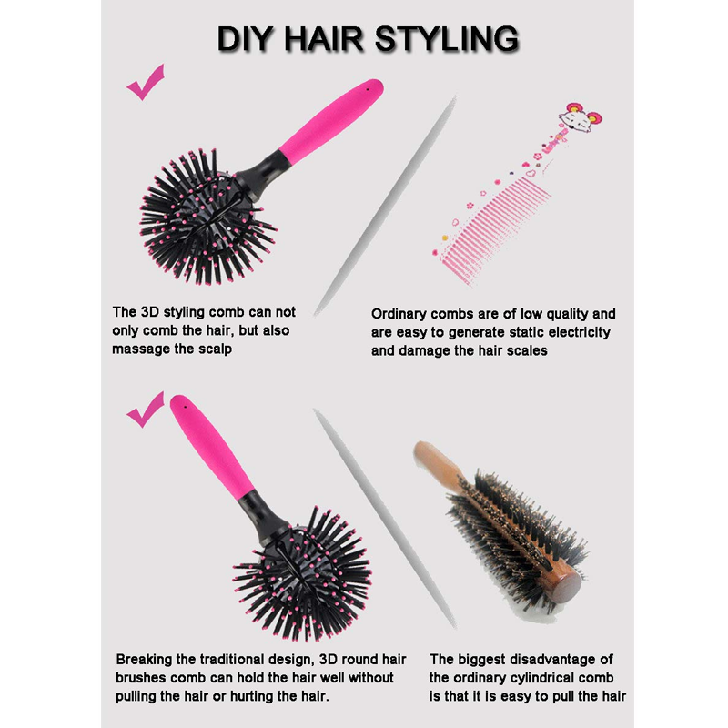 Zestaw zawiera: 1/2 * 3D Okrągły grzebień do loków dla kobiet