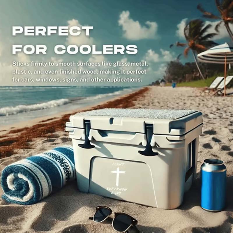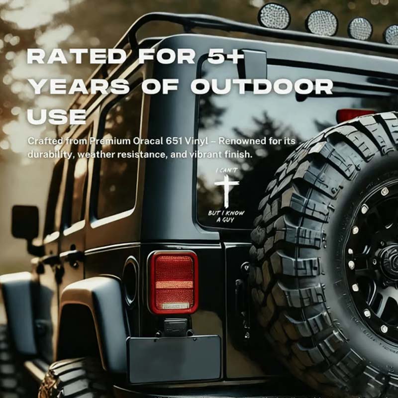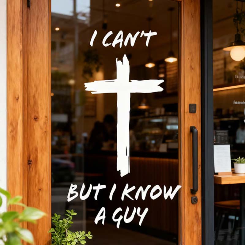 Przedstawia mocne zdanie „I CAN'T BUT I KNOW A GUY” umieszczone wokół krzyża, stanowiące podnoszące na duchu wyznanie wiary.