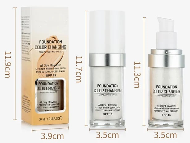 Nasz podkład charakteryzuje się innowacyjną formułą, która idealnie dopasowuje się do odcienia skóry, eliminując potrzebę stosowania kremu nawilżającego lub filtrów przeciwsłonecznych.