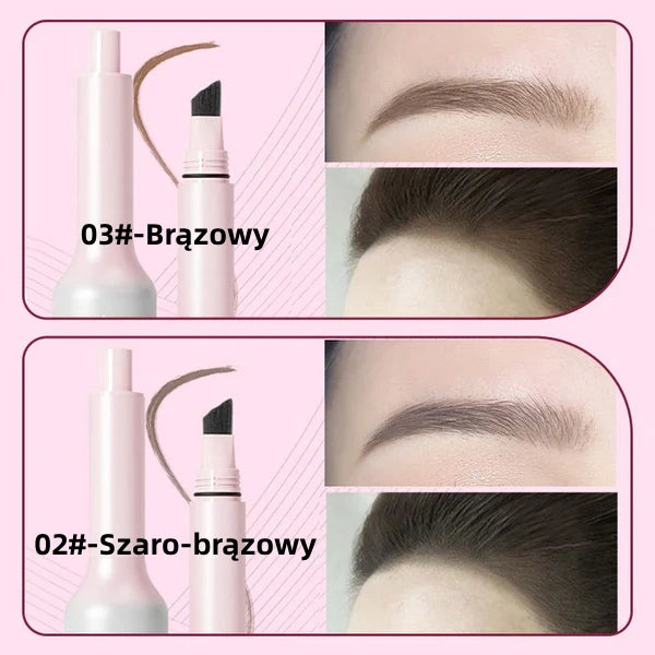 Ten innowacyjny produkt łączy w sobie silnie napigmentowaną formułę z precyzyjnym skośnym pędzelkiem, dzięki czemu można łatwo zdefiniować, wypełnić i ukształtować brwi. Zapewnia naturalny efekt mikropigmentacji z realistycznymi włóknistymi rysami.