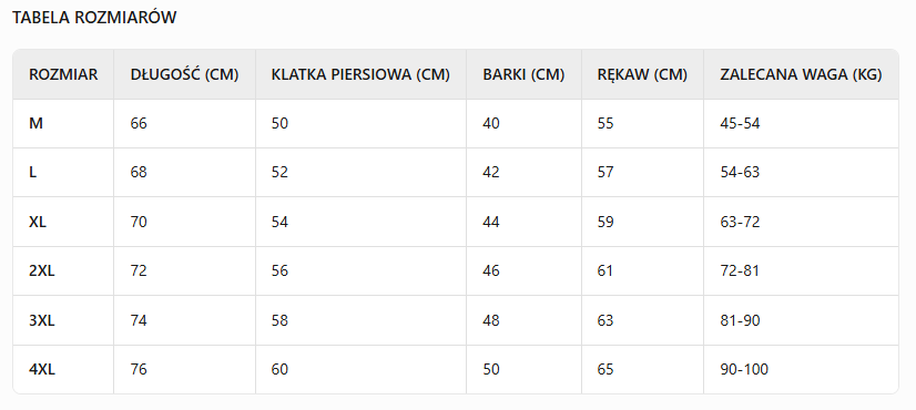 Rozmiar: M, L, XL, 2XL, 3XL, 4XL