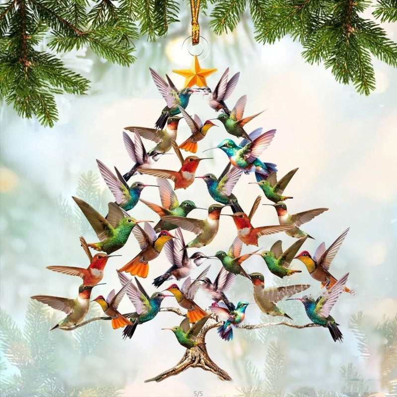 Zestaw zawiera: 2 * Akrylowa ozdoba świąteczna w kształcie kolibra