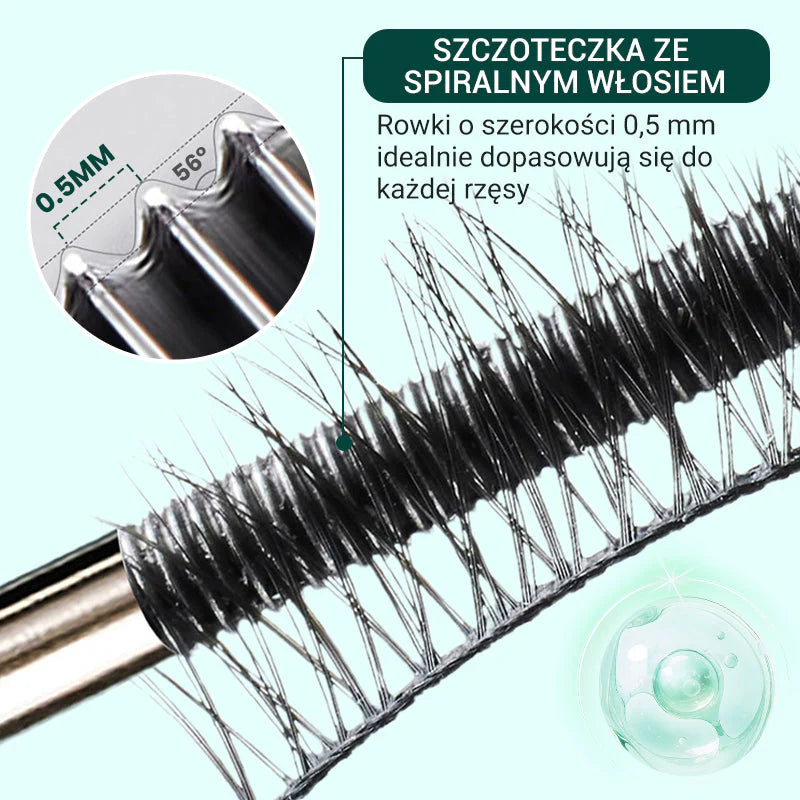 Dzięki innowacyjnej główce szczoteczki o średnicy 0,5 mm z rowkami ustawionymi pod kątem 56 stopni, precyzyjnie pokrywa każdą rzęsę, zapewniając idealne rozdzielenie rzęs. Jej unikalna formuła zapobiega tworzeniu się grudek, jednocześnie odżywiając rzęsy i podkreślając ich naturalne piękno, zapewniając bardziej równomierne i harmonijne wykończenie.