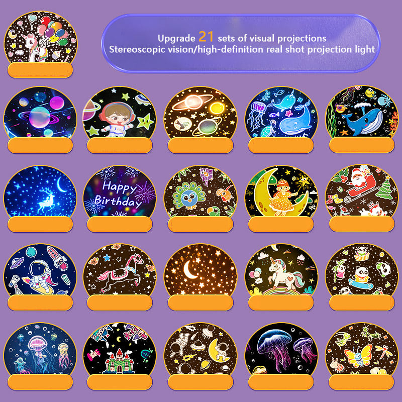 Ten projektor jest uniwersalnym elementem dekoracyjnym, odpowiednim do różnych pomieszczeń, w tym sypialni, salonu, szafy, jadalni, gabinetu czy korytarza. Jego lśniące piękno widoczne jest nawet przy wyłączonym świetle. Po włączeniu projektor staje się olśniewającą, kolorową lampką nocną, dodając elegancji i uroku Twojemu domowi.