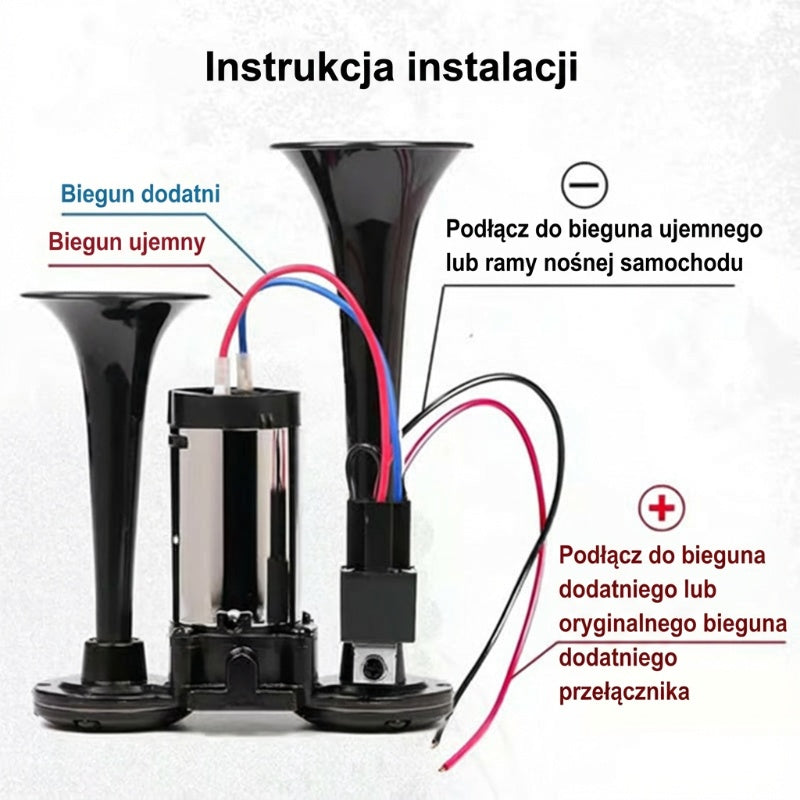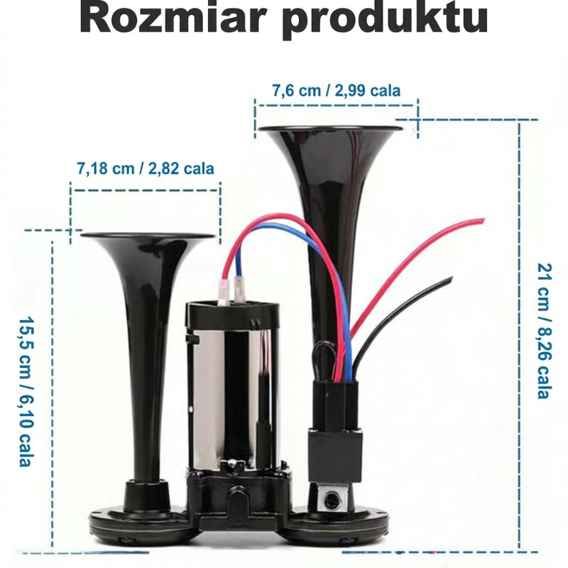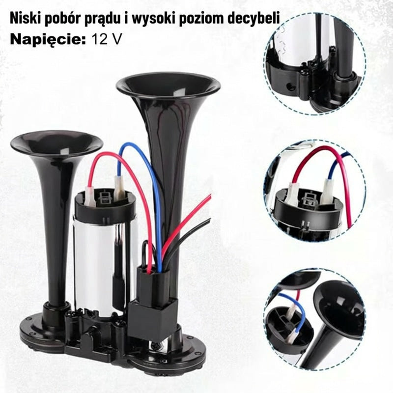 Zawartość opakowania: 1 × Dwururowy metalowy klakson